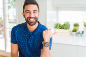 Zdjęcie "Portret przystojny mężczyzna w t shirt, stojący przed szary teksturowanej ściany z kopia miejsce na reklamy, Wyświetlono jego stylowy nowoczesny inteligentny zegarek z pustego ekranu" może być wykorzystywane do celów osobistych i komercyjnych zgodnie z warunkami zakupionej licencji Royalty-free. Obraz jest dostępny do pobrania w jakości wysokiej rozdzielczości do 5760x3840.