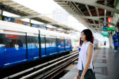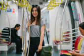 Zdjęcie "młody i ładny japoński turystycznych Azji kobieta siedzi w pociągu w Azji na wakacjach. Ona jest Ładna, atrakcyjna i szczęśliwie się uśmiecha jak ona relaksuje w jej miejsce." może być wykorzystywane do celów osobistych i komercyjnych zgodnie z warunkami zakupionej licencji Royalty-free. Obraz jest dostępny do pobrania w jakości wysokiej rozdzielczości do 5760x3840.