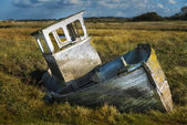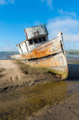 Łódź rybacka opuszczonych wraki leżące w błotnej na brzegów rzek w Heswall, w pobliżu Liverpoolu