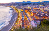 Widokiem na zachód słońca nadmorskiego miasta Nicea, Frank