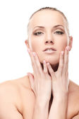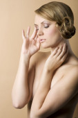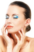 kwiatowy makijaż, ona zwróciła się o trzy czwarte