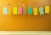 clothespins wiszące z papieru puste miejsca na podłoże drewniane