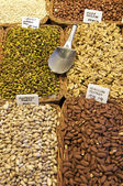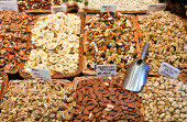 orzechy dostawcy na rynku boqueria w barcelona, Hiszpania