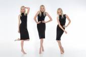 Portret pięknej brunetki w czarnej sukience. Moda pho