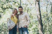 Portret młodej pary w miłości, w parku, dziewczyna była skierowana do góry