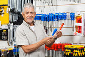 portret pewni sprzedawcy starsze z broni przekroczył w sklepie sprzętu