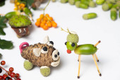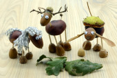 Tworzenie acorn kasztan postacie jak koń i i człowiek z rur w czasie jesieni. tinker dzieciństwa.