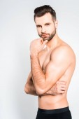 poważne shirtless macho, patrząc na kamery na białym tle