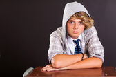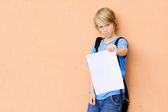 nastoletniego chłopca gospodarstwa tablica przy karnym shot kubek