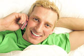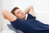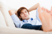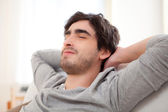 portret przystojny młody mężczyzna patrząc w górę podczas relaksu