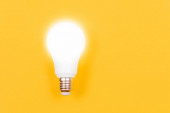 Zdjęcie "Świecące żarówki na żółtym tle, mając nowe koncepcje" może być wykorzystywane do celów osobistych i komercyjnych zgodnie z warunkami zakupionej licencji Royalty-free. Obraz jest dostępny do pobrania w jakości wysokiej rozdzielczości do 5760x3840.
