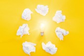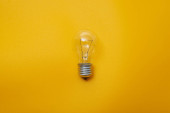 Świecące żarówki na żółtym tle, mając nowe koncepcje
