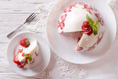sernik w kształcie serca z mięty na talerzu. widok z góry