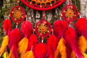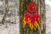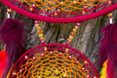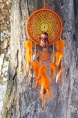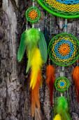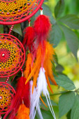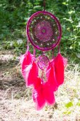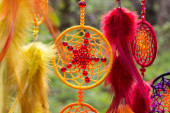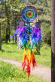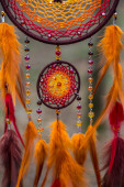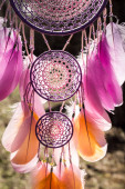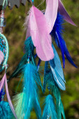 Zdjęcie "Łapacz snów z piór nici i koraliki liny wiszące. Dreamcatcher ręcznie robione" może być wykorzystywane do celów osobistych i komercyjnych zgodnie z warunkami zakupionej licencji Royalty-free. Obraz jest dostępny do pobrania w jakości wysokiej rozdzielczości do 5760x3840.