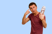 Zdjęcie "Facet trzyma brudnych skarpetek. Emocje z obrzydzeniem od zapachu. Mężczyzna na białym tle" może być wykorzystywane do celów osobistych i komercyjnych zgodnie z warunkami zakupionej licencji Royalty-free. Obraz jest dostępny do pobrania w jakości wysokiej rozdzielczości do 5760x3840.