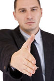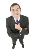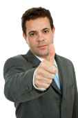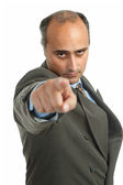 młody biznes człowiek w garniturze, wskazując palcem