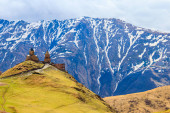 Gergeti Trinity Church (Csminda Sameba), Kościół Św. Trójcy w pobliżu wsi Gergeti w górach Kaukaskich, Gruzja
