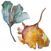 Ginkgo biloba liść. Liść roślina botaniczny ogród kwiatowy liści. Zestaw ilustracji tle akwarela. Akwarela rysunku aquarelle moda na białym tle. Element ilustracja na białym tle ginkgo.