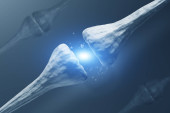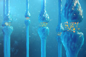 Abstrakcyjny obraz trzy różowe i białe pionowe neuronów na niebieskim tle z komórek układu nerwowego. Pojęcie nauki i medycyny. renderowania 3D