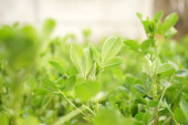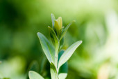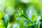 Szczegółowy widok zielonej rośliny z liści na niewyraźne tło