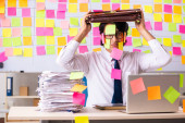 Zdjęcie "Młody pracownik w sprzecznej koncepcji priorytetów " może być wykorzystywane do celów osobistych i komercyjnych zgodnie z warunkami zakupionej licencji Royalty-free. Obraz jest dostępny do pobrania w jakości wysokiej rozdzielczości do 5760x3840.