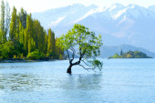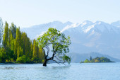 Zdjęcie "Lake Wanaka od Glendhu Bay pięknie uspokoić odbijającej wiosna kolor liści i Alpy Południowe jako tło" może być wykorzystywane do celów osobistych i komercyjnych zgodnie z warunkami zakupionej licencji Royalty-free. Obraz jest dostępny do pobrania w jakości wysokiej rozdzielczości do 5760x3840.