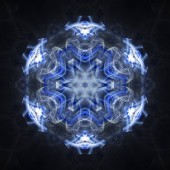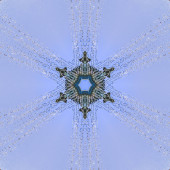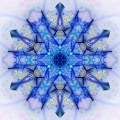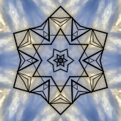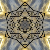 Metalowe drążki w wzór gwiazdek i światła. Kalejdoskop geometryczny wzór na oś odbicia lustrzanego odbicia symetrii. Kolorowe kształty jako tapety tło reklamy lub tło.