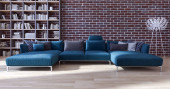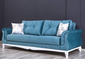 turkusowa sofa w klasycznym salonie z drewnianą podłogą, styl wnętrza