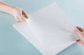 przycięte widzenia młoda kobieta czytając tekst brajlowski ręką na niebiesko