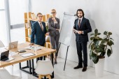 wielokulturowa Grupa przystojnych biznesmenów i wesoły bizneswomen chodzenie w biurze
