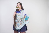 Zdjęcie "cute kobiece kaukaski dziewczyna stoi w przezroczystej, cienkiej letniej koszulce z okrągłym kolorowym cukierków w ręku na białym tle w Studio" może być wykorzystywane do celów osobistych i komercyjnych zgodnie z warunkami zakupionej licencji Royalty-free. Obraz jest dostępny do pobrania w jakości wysokiej rozdzielczości do 5760x3840.