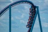 Zdjęcie "Orlando na Florydzie. 7 kwietnia 2019. Ludzie mający zabawy niesamowite Mako rollercoaster na LightBlue zachmurzony tle nieba w Seaworld w International Drive obszar (7)." może być wykorzystywane do celów osobistych i komercyjnych zgodnie z warunkami zakupionej licencji Royalty-free. Obraz jest dostępny do pobrania w jakości wysokiej rozdzielczości do 5760x3840.