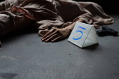 pokryte zwłoki z okularami na podłodze na scenie zbrodni