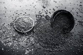 Zdjęcie "Surowe organiczne ziołowe przyprawy nasiona gorczycy lub sarso lub Rai lub Brassica nigra, w glinianym naczyniu na powierzchni drewnianej." może być wykorzystywane do celów osobistych i komercyjnych zgodnie z warunkami zakupionej licencji Royalty-free. Obraz jest dostępny do pobrania w jakości wysokiej rozdzielczości do 5760x3840.