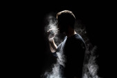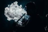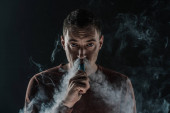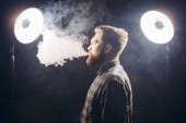 sylwetka człowieka palenia fajki w dymie w ciemności