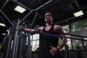 Przystojny afrykański sportowiec ćwiczy na siłowni.