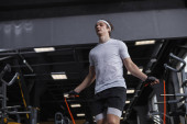 Przystojny afrykański sportowiec ćwiczy na siłowni.