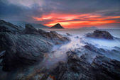 dramatyczne wschód słońca nad skaliste wybrzeże Morza dymu