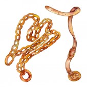 Złote łańcuchy szkic Glamour ilustracji w stylu akwarela na białym tle element. Zestaw tła akwarelowego.