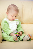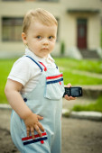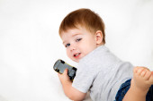 dziecko patrzy na telefon komórkowy z zainteresowaniem