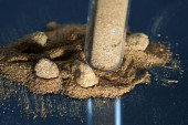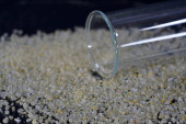 Potas jest pierwiastek chemiczny i został sfotografowany tutaj z ciemnym tle z obiektywem makro, aby uzyskać szczegółowe informacje dobrze widoczne