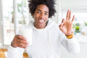 Zdjęcie "African American mężczyzna trzyma i picie szkła mleka bardzo szczęśliwy wskazując ręką i palcem" może być wykorzystywane do celów osobistych i komercyjnych zgodnie z warunkami zakupionej licencji Royalty-free. Obraz jest dostępny do pobrania w jakości wysokiej rozdzielczości do 5760x3840.