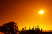 żarówki znak na słonecznym tle nieba zachód słońca. promienie słoneczne.