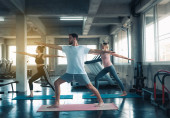 Zdjęcie "Grupa młodych sportowy Yogi praktykują Joga z instruktorem w siłowni., sportowy ludzie w Sportswear pracują na trening Joga w fitness Club., opieka zdrowotna i rozrywka koncepcja." może być wykorzystywane do celów osobistych i komercyjnych zgodnie z warunkami zakupionej licencji Royalty-free. Obraz jest dostępny do pobrania w jakości wysokiej rozdzielczości do 5760x3840.
