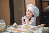 dziewczyna dzieciak są przygotowanie ciasta w kuchni.
