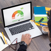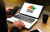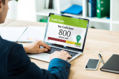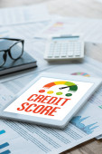 selektywne skupienie szczęśliwego człowieka gospodarstwa cyfrowego tabletu z kredytu wynik literowanie w biurze