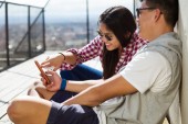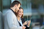 Zdjęcie "Młoda para z inteligentny telefon" może być wykorzystywane do celów osobistych i komercyjnych zgodnie z warunkami zakupionej licencji Royalty-free. Obraz jest dostępny do pobrania w jakości wysokiej rozdzielczości do 5760x3840.