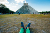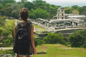 Tikal, Gwatemala sierpień turystyczny patrzy na znajduje się w departamencie El Peten, Tikal National Park.