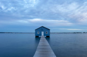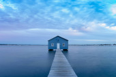 Zdjęcie "Blue Boat House w Perth w pochmurny zachód słońca" może być wykorzystywane do celów osobistych i komercyjnych zgodnie z warunkami zakupionej licencji Royalty-free. Obraz jest dostępny do pobrania w jakości wysokiej rozdzielczości do 5760x3840.