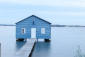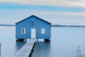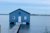Zdjęcie "Blue Boat House w Perth w pochmurny zachód słońca" może być wykorzystywane do celów osobistych i komercyjnych zgodnie z warunkami zakupionej licencji Royalty-free. Obraz jest dostępny do pobrania w jakości wysokiej rozdzielczości do 5760x3840.